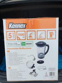 Potenza 1000 W, ciotola in acciaio inox da 5,5 litri e 5 velocità. Gancio impastatore, frusta sbatti uova, agitatore a foglie e coperchio paraspruzzi. Accessorio tritacarne in metallo. Trafila per pasta (6 dischi). Frullatore a bicchiere da 1 litro, con funzione tritaghiaccio. Design elegante perfetta per ogni esigenza culinaria.