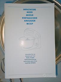 impastatore con due ciotole pratiche da lavare, coperchio in plastica trasparente, due fruste, tasti per movimentare l'impastatore e regolare la potenza, incluse le istruzioni per l'uso