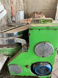 Impastatrice a forcella vasc in ghisa il resto è tutto acciaio motore e meccanica in perfette condizioni alimentazione a 220 vasca da 25/30 litri già preparata per la verniciatura alimentare anche se il primo proprietario la usava così a fine impasto la ungeva con un po’ di olio e basta io non l ho mai usata per mancanza di tempo di Fare il pane comprarta durante il Covid e mai usata perfettamente funzionante forcella 1 velocità visibile a cava de Tirreni a occhio si possono impastare 25 kg prezzo 330 trattabile mi è costato 90 euro solo il carrellino sotto