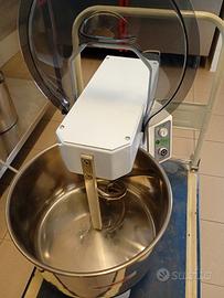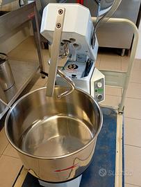 impastatrice a spirale della Fimar, macchina professionale per preparare impasti per pane, pizza e piadine da 18 kg, ad 1 sola velocità. Le parti che entrano in contatto con gli alimenti, come la vasca e la spirale, sono in acciaio inox per garantire igiene e resistenza. coperchio in policarbonato fumé. quando si alza il coperchio per sicurezza di ferma. come nuova, usata pochissimo. E' un'attrezzatura per la lavorazione di alimenti, pane, pizza, dolci ... ecc , prodotta da Fimar. I dettagli: Modello: IM18C40050T (Numero di serie: 5111247 - Anno di produzione: 2005) Specifiche elettriche: 400 V, 50 Hz, 750 W Peso: 64,40 Kg Grado di protezione IP: IPX3 misura vasca inox= 36 cm di diametro x 21 cm h Ingombro h 62, sp 39, Lunga 67