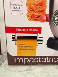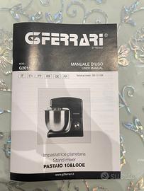 Acquistata a dicembre 2025 Utilizzata una sola volta Consegna a mano. Con accessorio tira pasta incluso. Potenza massima 2.200W Capacità 10 litri 6 velocità Pulse Contenitore inox alimentatore Uncino impastatore, mescolatore e frusta sbattitrice