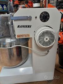 Capacità d'impasto kg 15/23 (capacità farina 15 kg - capacità impasto 23 kg) - volume vasca 35 lt - motore elettrico 220V, 1200 W - mono velocità, 55 battute al minuto.
