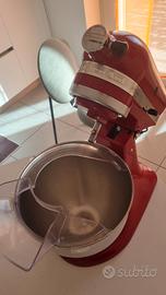 Vendesi impastatrice planetaria KichenAid Artisan color rosso, usata poco in ottime condizioni con tre tipi di fruste accessori, come si vedono in foto e coperchio.