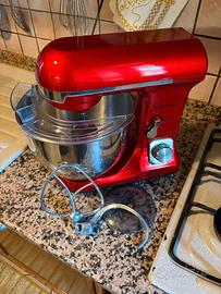 Robot da cucina, Impastatrice Planetaria, 1200 W, 6 Livelli di Velocità, Mixer in Acciaio Inox, Funzione a Impulsi, Sistema di Miscelazione Planetario, 3 Attacchi, Rosso