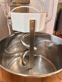 Impastatrice da 25kg a spirale con testa fissa e rompi pasta centrale in acciaio inox cm 40d x 26h, capacità 32l.