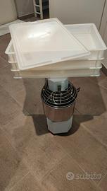 Macchina impastatrice 10kg. Perfetta. Utilizzata 3 volte, vendo con inclusi 3 contenitori alimentari per panetti e pizza. La macchina pesa 38,5 kg ed è tutta in metallo. Macchina semi professionale