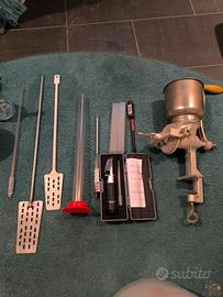 sessola, termometro, palette, vari tubi e filtri