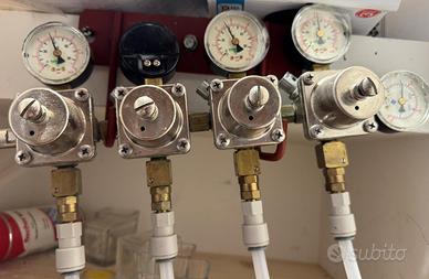 Impianto di spillatura vino 6 vie più riduttore pressione azoto a 4 vie.