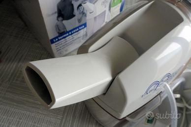 Apparecchio per la ripetizione domiciliare delle cure inalatorie caldo/umide; emette particelle la cui granulometria è simile a quelle prodotte negli stabilimenti termali.