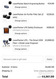 Vendo LaserPecker LP5 - The Smart 20W Fiber + Diode Laser Engraver. La macchina è stata usata una decina di volte per piccoli lavoretti. Non manca nulla. Tutto quello che c'è nelle foto + un rotore ancora imballato + vari materiali da incidere.Ho tutti gli scatoloni e gli imballi integri. RITIRO A MANO! Almeno potrete visionare con i vostri occhi. Vendo per cambio progetto.