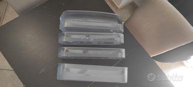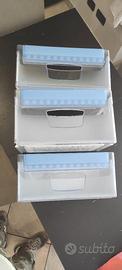 Vendo come in foto set completo usato ma in ottime condizioni dell'interno del frigo descritto nel titolo. Solo un cassetto del freezer è stato riparato per una piccola scheggiatura. Presente qualche macchietta bianca su alcune plastiche dovute a succo di limone. Vendo in blocco o metà set da concordare. Costo della spedizione a carico dell'acquirente da stabilire secondo lo spedizioniere.