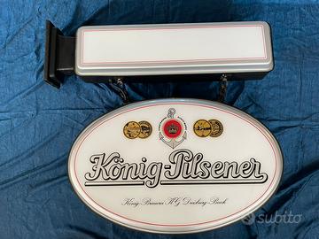 Insegna a bandiera birra KONIG PILSENER da birreria luminosa da 2 parti nuova mai montata originale anni 80.