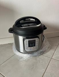 Articolo nuovo, utilizzato solo una volta per verificarne il funzionamento corretto. Presente libretto istruzioni come da foto Principali funzioni: Pentola a pressione, cotture lente a basse temperature, cuociriso, vaporiera, padella per soffriggere e rosolare, yogurtiera e altre funzioni (13 programmi totali). Modello da 5,7 Litri.