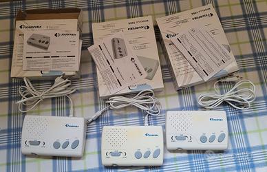 4 canali, volume di ricezione regolabile, funzioni Call, Talk e Lock (quest'ultima per ascolto continuo, molto adatta per monitorare i neonati). Installabili anche a parete. Completi di istruzioni e confezioni originali.