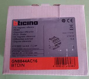 INTERRUTTORE DIFFERENZIALE MAGNETOTERMICO BTICINO GN8844AC16, NUOVO, MAI USATO ED ANCORA NELLA CONFEZIONE ORIGINALE. POTERE DI INTERRUZIONE ICN: 6KA, CORRENTE DI ENTRATA: 16A, ALIMENTAZIONE 400V, POLI 4P, CORRENTE DIFFERENZIALE IDN 0,3A, MODULI 4. DIMENSIONI 83X71,2X76MM. NON UTILIZZO SUBITO PER PAGAMENTO E SPEDIZIONE. SE NON È POSSIBILE UN INCONTRO DIRETTO PER CONCLUDERE LA TRASLAZIONE DELL’INTERRUTTORE, IL PAGAMENTO DEVE AVVENIRE ANTICIPATAMENTE TRAMITE BONIFICO O ALTRO SISTEMA DI PAGAMENTO TELEMATICO. PER L’EVENTUALE SPEDIZIONE È UTILIZZATO CORRIERE TRACCIABILE POSTE ITALIANE O CORRIERE GESTITO DELL’ACQUIRENTE. VENDO A 145 EURO TRATTABILI