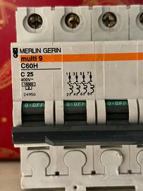 Interruttore magnetotermico differenziale quadripolare Merlin Gerin Interruzione da sovraccarico 25 ampere curva C Differenziale 0,03A 30mA 4 poli - 3 F + N
