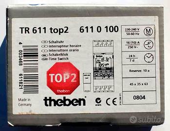 Interruttore orario digitale settimanale Theben TR 611 Top 2, modulare (2 moduli) Alim. 230Vac, 1 contatto di scambio 16A carico resistivo.