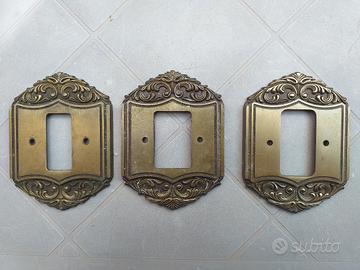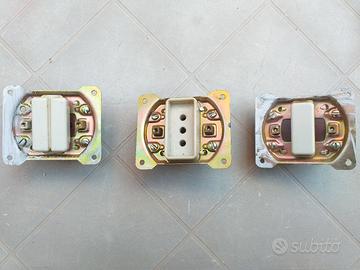 Lotto materiale elettrico BTicino serie Piuma consistente in: n.4 placche in bronzo per interruttore singolo n.9 placche in bronzo per presa o invertitore n.3 deviatore n.1 deviatore doppio n.2 invertitore n.4 prese 10A n.2 prese 16A (danneggiate ) n.22 viti per placche Da ripulire. Vedi foto. Consegna a mano.