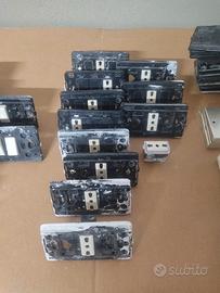1 Citofono Urmet usato ma funzionante 3 interruttori 9 deviatori 13 prese 7 placche alluminio 2 posti 5 placche alluminio 1 posto 7 placche plastica 2 fori 13 placche plastica 1 foro 30 supporti interruttori