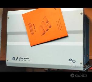 Inverter sinusoidale AJ ad onda pura,24 volt 20 volt potenza 2400 watt, adatto ad impianti per case isolate, barche, baite, senza fornitura elettrica fotovoltaici, eolico, idraulico con turbine, completamente automatico , una volta collegato al banco batterie alimenta l impianto con corrente ad uso domestico, sostiene ogni elettrodomestico, come lavatrice frigo tv ecc.