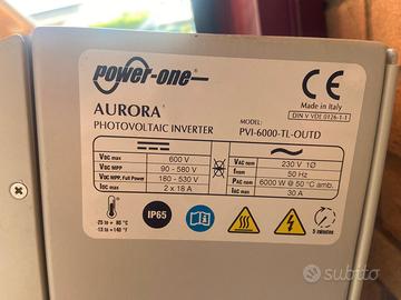 Inverter fotovoltaico Aurora Power-One 6 kW – da riparare Vendo inverter Aurora PVI-6000-TL-OUTD: si accende ma non converte, da sistemare la scheda. Ottimo per chi ripara o per pezzi di ricambio. Non spedisco, solo ritiro a mano