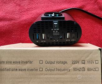 Inverter per auto da 300W. - Adattatore per presa accendisigari. - Ideale per convertire la corrente dell'auto.