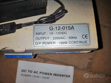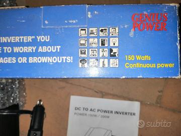 Vendo inverter nuovo da 12V 150W continui con collegamento per accendino da auto o camper