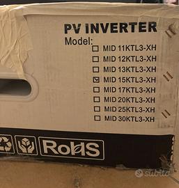 Inverter Fotovoltaico Growatt MID 15KTL3-XH Descrizione: Vendo per errato acquisto inverter fotovoltaico 15 KW Growatt, modello MID 15KTL3-XH. Il modello è stato acquistato in Polonia ed il firmware non è compatibile con CEI 0.21, in Italia è utilizzabile solo per sistemi off grid ( baite, camper ecc. ) L’unità è nel suo imballaggio originale, come visibile dalle foto. Questo modello fa parte della serie XH, il che significa che è Battery Ready: predisposto per l'accumulo, permettendo di integrare facilmente un sistema a batterie Growatt. Caratteristiche Principali: Modello: MID 15KTL3-XH (Trifase) Potenza Nominale: 15 kW Tecnologia: Battery Ready (predisposto per sistemi di accumulo Growatt) Efficienza: Altissima efficienza energetica (fino al 98.7%) Design: Compatto e leggero rispetto alla sua categoria di potenza Protezioni: Protezione da sovratensioni integrate (SPD tipo II su lato DC e AC) Stato del Prodotto: Condizioni: Come nuovo, aperto, testato e richiuso Imballaggio: Scatola originale (dimensioni visibili in foto, circa 70cm di lunghezza). Certificazioni: Conforme alle normative RoHS e principali standard di sicurezza. Contenuto della vendita: 1x Inverter Growatt MID 15KTL3-XH completo di accessori di montaggio (inclusi nella confezione )