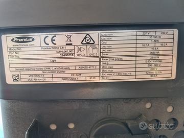 Inverter Fronius Primo 3.6-1, versione Light, installato nel 2018, perfettamente funzionante, vendo per sostituzione con sistema compatibile con batteria di accumulo. No spedizione.