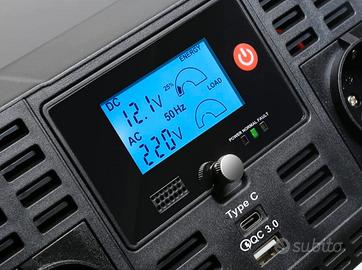 Vendo Inverter Technaxx TE22 con display LCD da 12 V a 230 V Pure Sine certificato TÜV con 2 spine Schuko e 2 porte USB - Potenza 2000 W / 4000 W (picco) come nuovo euro 90