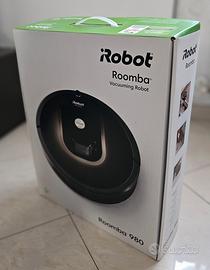 iRobot Modello Roomba 980 . Controllo anche da remoto da smartphone. N°2 sensori / barriere elettroniche comprese. Batteria molto efficiente 100 mininuti di aspirazione senza dover tornare alla sua base, 110mq . Vendo nella sua confezione originale.