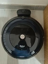 Robot aspirapolvere Roomba iRobot Serie 600, perfettamente funzionante e completo di tutti gli accessori (manuale, base di ricarica e cavo di alimentazione della base). Non presenta segni di usura. Venduto con filtro nuovo e spazzola laterale nuova.