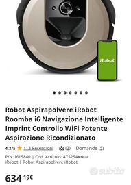 Aspirapolvere irobot i6 comprato e usato una sola volta perche non adatto ai miei spazi.