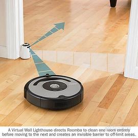 A differenza dei tradizionali muri virtuali, il muro virtuale Lighthouse dialoga con il robot e permette a Roomba di passare al locale successivo solo dopo che ha completato la pulizia dell'intero ambiente.