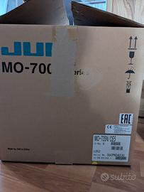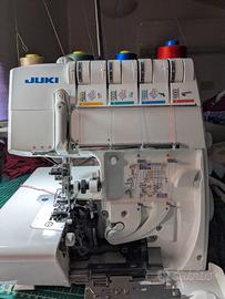Tagliacuce Juki MO-735 1/2 aghi - 2/3/4 fili, differenziale e allunga punto, placca ago con doppio indice per orlino, infilatura automatica aghi e crochet inferiore, contenitore ritagli. Convertibile in punto copertura 2/3 aghi, 2 fili e cuciture di sicurezza a 5 fili. Punto catenella . Velocità max1500 punti/min. Completa di accessori, piedini per punto copertura. Imballo originale
