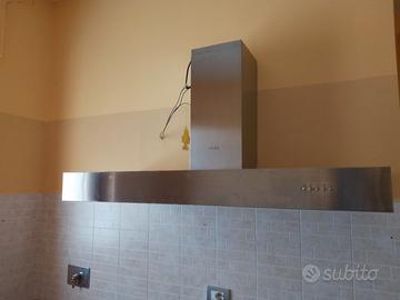Cappa Elica con tre lampadine alogene e piano cottura Franke semiprofessionali in acciaio inox a sviluppo orizzontale.
