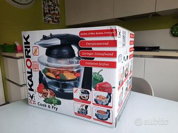 Vendo friggitrice senza olio e forno 2 in uno. Apparecchio combinato che funziona da forno e friggitrice per cucinare pesce alla griglia, carne. verdure e pizza.