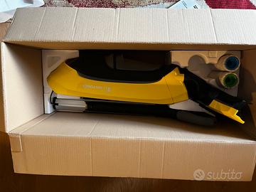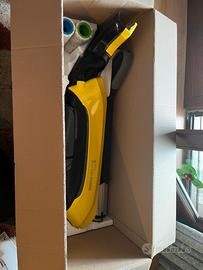 Vendo aspirapolvere lavapavimenti a batteria professionale Karcher FC5 Cordless. Come nuova, con imballo e accessori originali in stato perfetto. Batteria con pochi cicli di carica effettuati (massimo una ventina). Vendo causa passaggio a robot automatico, per casa piu grande. Per esperienza ci ho gestito ottimamente, seppur per poche settimane, la pulizia di una casa con una superfice lavabile di circa 80mq senza avere problemi di autonomia batteria. Di seguito le caratteristiche tecniche prese dal Web: -Adatta a superfici delicate come il Parquet ed efficace sulle superfici più resistenti come i pavimenti in gress o pietra. Con un serbatoio pieno copre un'area di 60 m². Pavimenti asciutti in soli 2 minuti. Pesa solo 4,6 Kg. Con funzione aspirante per rimuovere l'acqua in eccesso dai rulli. -Pulisci sempre con acqua pulita! I rulli vengono continuamente bagnati con acqua pulita e detergente. Ad ogni rotazione, una lamina strizza via lo sporco e lo raccoglie convogliandolo nel serbatoio dell’acqua sporca. FC 5 ha un serbatoio per l'acqua pulita da 400 ml e un serbatoio per l'acqua sporca da 200 ml. -Risultati di pulizia migliori del 20% rispetto ai metodi tradizionali! La qualità del pulito è superiore del 20% e la fatica fisica si è ridotta quasi a zero rispetto alla pulizia con i metodi classici. Invece di dover sfregare il pavimento per rimuovere lo sporco, basterà azionare i rulli che lo rimuovono dal pavimento e convogliano l'acqua sporca in un serbatoi separato. -Massima libertà di movimento con la batteria integrata. Rulli lavabili comodamente in lavatrice fino a 60° per la massima igiene. Nella confezione: FC 5 Cordless, Coppia di rulli in microfibra gialli per tutti i tipi di pavimenti, Stazione di parcheggio e lavaggio rulli, Caricabatterie