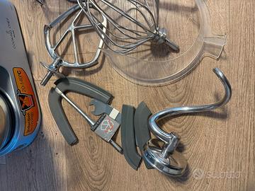 Vendo planetaria Kenwood cooking chef KM070 con cottura a induzione perfettamente funzionante con i seguenti accessori Ciotola da 6,7 litri Paraschizzi e protezione termica Frusta K o foglia Frusta a filo grosso Frusta a gancio Frusta mezzaluna in silicone per cottura (con ricambi in silicone) Spatola in plastica Kenwood Welcome Kit: Guida alle attrezzature, Guida rapida di consultazione e Libro di ricette Possibile ritiro a mano