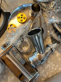 Cooking chef con dotazione base (frullatore, mix con vari dischi/lame, varie fruste, copertura per cottura, vassoio vapore ecc) + seguenti accessori extra: spremiagrumi, macina spezie con tre barattoli in vetro, pasta fresca (varie trafile + sfoglia), seconda ciotola (solo per impastatrice, non per cottura).