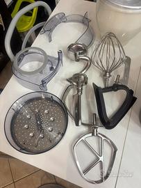 Kenwood cooking chef major, 1500W usato, in condizioni quasi perfette, gli unici difetti sono quelli in foto, guarnizione un po’ rovinata ma non ne inficia il funzionamento e filo ricoperto da nastro isolante. Compresi nella vendita