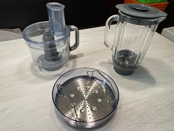 Kenwood cooking chef XL con tutti gli accessori come in foto, usato poco e funziona benissimo. Robot da cucina con bilancia incorporata, ciotola con cottura a induzione da 20 fino a 180 gradi. Affetta, trita, monta, impasta, cuoce. Perfetto per risotti, besciamella, purè, spezzatini, ragù e fantastico in pasticceria nella preparazione di creme dolci e torte. Dischi x affettare verdure, grattugiare e tagliare a julienne. Frullatore in vetro e accessorio per cottura a vapore mai usati. Connesso con app di ricette cucina da solo. Programmi base gia inseriti per farlo cucinare in autonomia come lievitazione, impasto , cottura lenta, meringhe, minestre, fondere il cioccolato ecc…