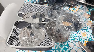 Potenza 1500 W in cottura, 550 W a freddo, 4,5 l capacità ciotola (capacità lavorabile 2,6 l - 8 porzioni), DIRECT SERVE: food processor che include 5 dischi per poter lavorare direttamente in ciotola o in altro recipiente. Accessori inclusi: lame tritatutto, speciale pala mescolatrice, frusta per montare a neve, cestello per la cottura a vapore. Range temperature 30°C - 180°C, 6 programmi pre-impostati, 12 velocità pre-impostate di mescolamento, parti lavabili in lavastoviglie, ricettario.