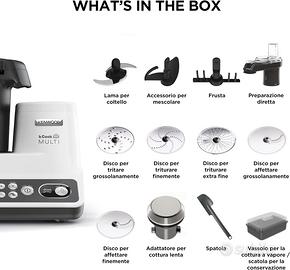 Come Nuovo Vendo per inutilizzo Kenwood kCook Multi CCL401WH, usato pochissimo, accessori perfetti e prestazioni top. Un robot professionale che cucina, affetta e vaporizza in un unico sistema. L'apparecchio è in condizioni eccellenti, come visibile dalle foto. 📦 Dotazione "Full Optional" – Tutto Originale e Perfetto, sprovvisto di scatola . Ciotola capiente da 4,5 L in acciaio inox. Accessorio Direct Prep: per affettare e grattugiare direttamente in ciotola (anche mentre cucini!). Vaporiera a due livelli (grande capacità per cotture sane e contemporanee). Set lame e strumenti: Lama tritatutto, pala mescolatrice e frusta. Cestello per cottura a vapore interno. Adattatore per la cottura lenta (Slow Cook). Ricettario originale incluso. ✨ 7 Programmi Intuitivi: Dalle zuppe ai risotti, fa tutto lui. Tu imposti, lui cucina e ti avvisa quando è pronto. Arriva fino a 180°C per soffritti e rosolature perfette. Un aiuto indispensabile in cucina, perfetto per chi cerca un prodotto affidabile e versatile pari al nuovo, ma a un prezzo vantaggioso.