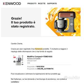 Buongiorno, vendo questo robot da cucina Kenwood, comprato il 20.02.2024 sul sito ufficiale Kenwood e registrato, usato veramente poco, alcuni accessori ancora nuovi, completo di scatola originale, libretto istruzioni e ricevuta di acquisto. Preferirei scambio a mano. Grazie, Alberto