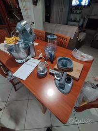 robot da cucina planetaria Kenwood prospero tupr km240 series completo di accessori: 3 fruste per impasti bicchiere frullatore grande tritatutto con vari lame spremiagrumi tritacarne bicchiere tritatutto piccolo CON AGGANCIO IN PLASTICA SLABRATO( da sostituire)