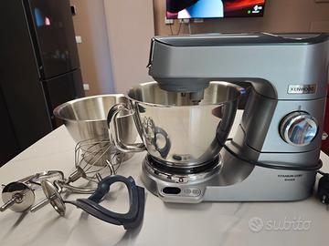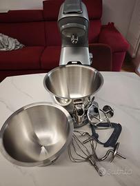 Vendo per inutilizzo planetaria Kenwood Titanium Chef Baker (modello KVC85.004SI) acquistata a ottobre 2024 su Amazon, in garanzia fino ad Ottobre 2026. La macchina è in condizioni estetiche e funzionali ottime, come da foto, usata pochissimo. Tutti gli accessori inclusi come si vede sempre da foto. Caratteristiche principali: Bilancia integrata EasyWeigh: pesi gli ingredienti direttamente nella ciotola risparmiando tempo e sporcando meno. Motore da 1200W: potente e affidabile per ogni tipo di impasto (pane, pizza, dolci). Sistema DuoBowl: incluse due ciotole in acciaio inox che si incastrano l'una nell'altra (una da 5L e una da 7L) per lavorazioni consecutive senza dover lavare tutto subito. Accessori inclusi: Frusta K, Gancio impastatore, Frusta a filo (tutti in acciaio inox). Frusta gommata per composti cremosi.