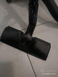 Funziona perfettamente, vendo con accessori in foto (molti mai utilizzati) + sacchetti compatibili+ una seconda boccetta liquido aperta utilizzata una sola volta. I difetti dell'aspirapolvere sono visibili nelle foto. Aspirapolvere molto potente e filo della corrente molto lungo. Se serve ho conservato la scatola originale.