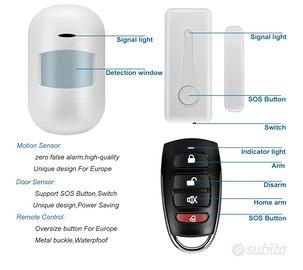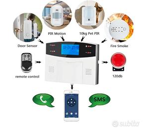 Kit Allarme Casa Gsm wifi 1 Centralina gsm wifi 1 Sensore Pir 1 sensore porta 1 sirena 2 telecomandi portachiavi App gratuita per controllo a distanza. L'allarme è "nuovo", era stato acquistato per installarlo in una casa che è stata subito venduta, perciò mai installato, nuovissimo, vendo per inutilizzo a prezzo basso. Ho anche un kit da 8 telecamere con registratore sempre nuovo (€100). Consegna a mano a Giarre-Riposto o Spedizione +€10
