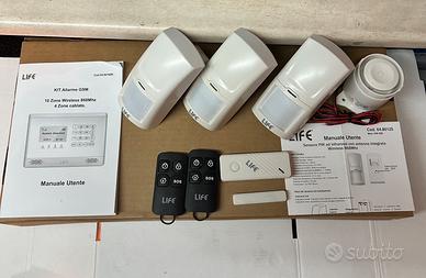 Perfettamente funzionante con 10 zone e possibilità di incrementare zone filari,gestione con applicazione e sim gsm per chiamate.possibilità di alimentazione sia 230v,che a 12vdc,completo di batterie.